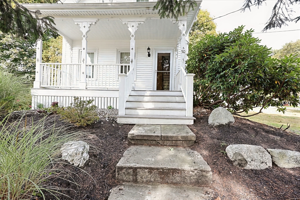 Welcome to 50 Front St, East Braintree – beautifully renovated 2BR with den/office/1BA single-family home. Charming curb appeal, front porch, ample off-street parking, generous side yard. Sun-drenched living room with hardwood floors flows into elegant dining room with chandelier. Updated kitchen features granite counters, ample cabinetry and cathedral/vaulted ceiling. Spacious full bath with ceramic tile. Upstairs: primary bedroom with dual closets/hardwood floors, secondary bedroom, plus home office/den. Full basement storage. Prime location – under 1 mile to commuter rail, easy Routes 3/93 access, walk to Weymouth Landing shops/restaurants. Watson Park/yacht clubs nearby. $3,400/month, available immediately. W/D hookups. Owner provides landscaping. Tenants responsible for all utilities & snow removal. No pets/non-smoking. Strong credit/references required. Appointment-only showings. MBTA Red Line within 5 miles. Amazing home for rent, start your next chapter here!